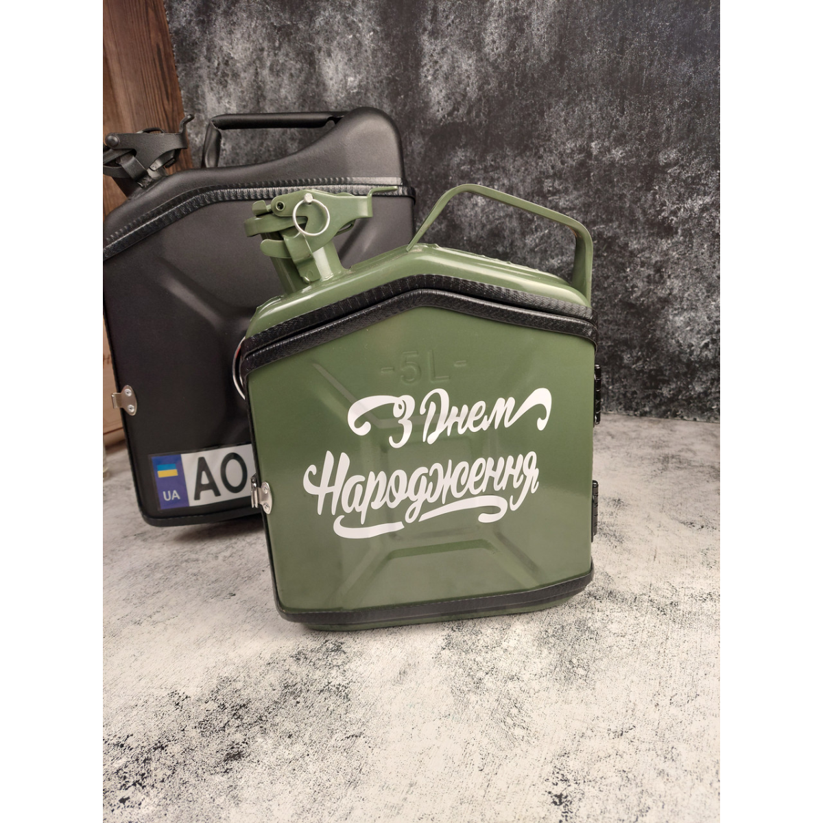 Міні бар каністра зелена на 5л. з посудом у подарунок чоловікові, хлопцю / Подарунковий набір для чоловіка