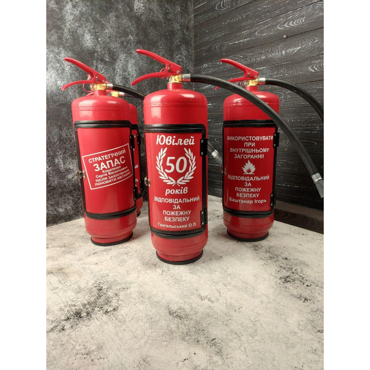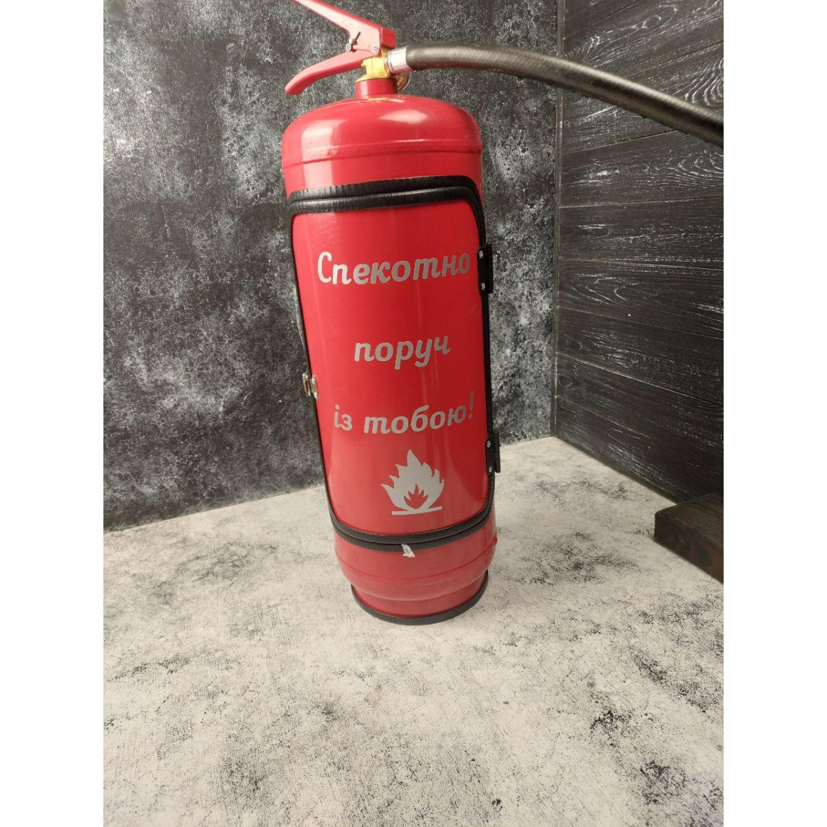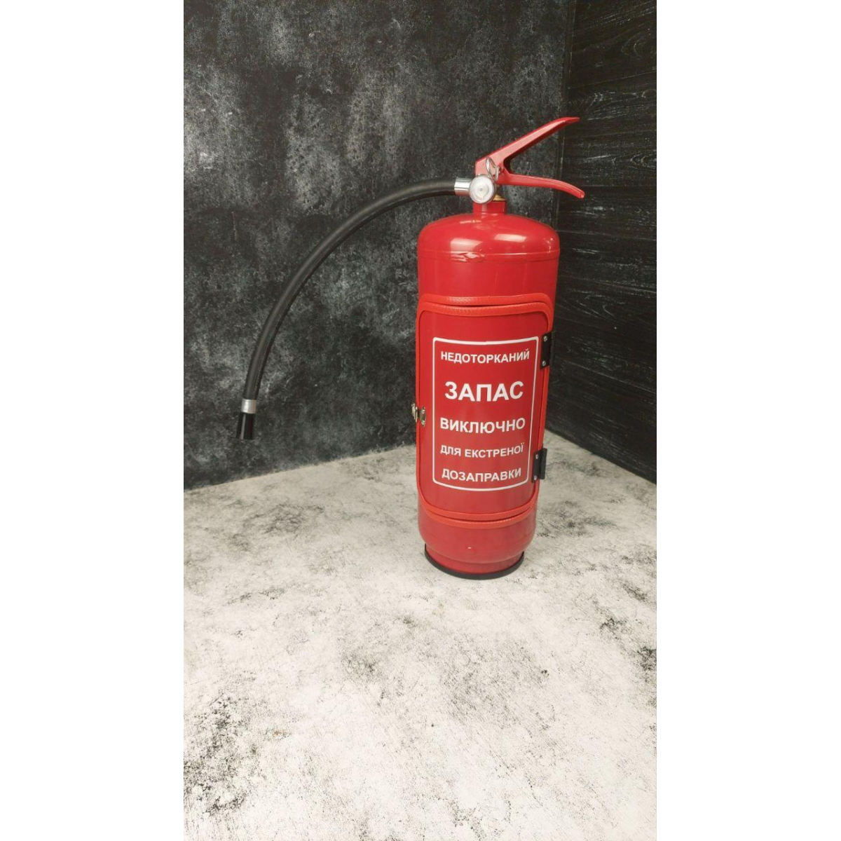 Міні бар вогнегасник червоний з посудом у подарунок чоловікові “Трійка“ / Подарунковий набір для хлопця