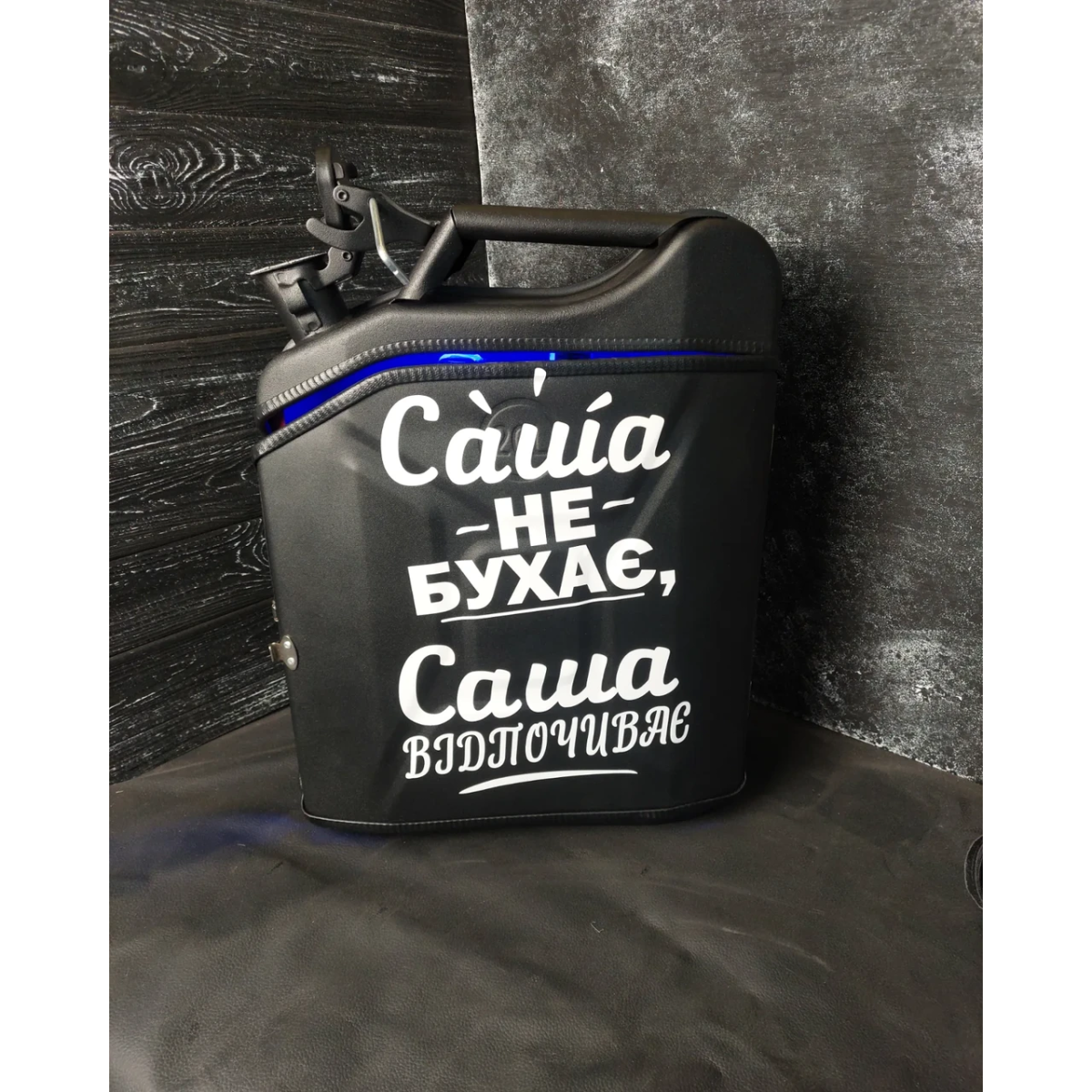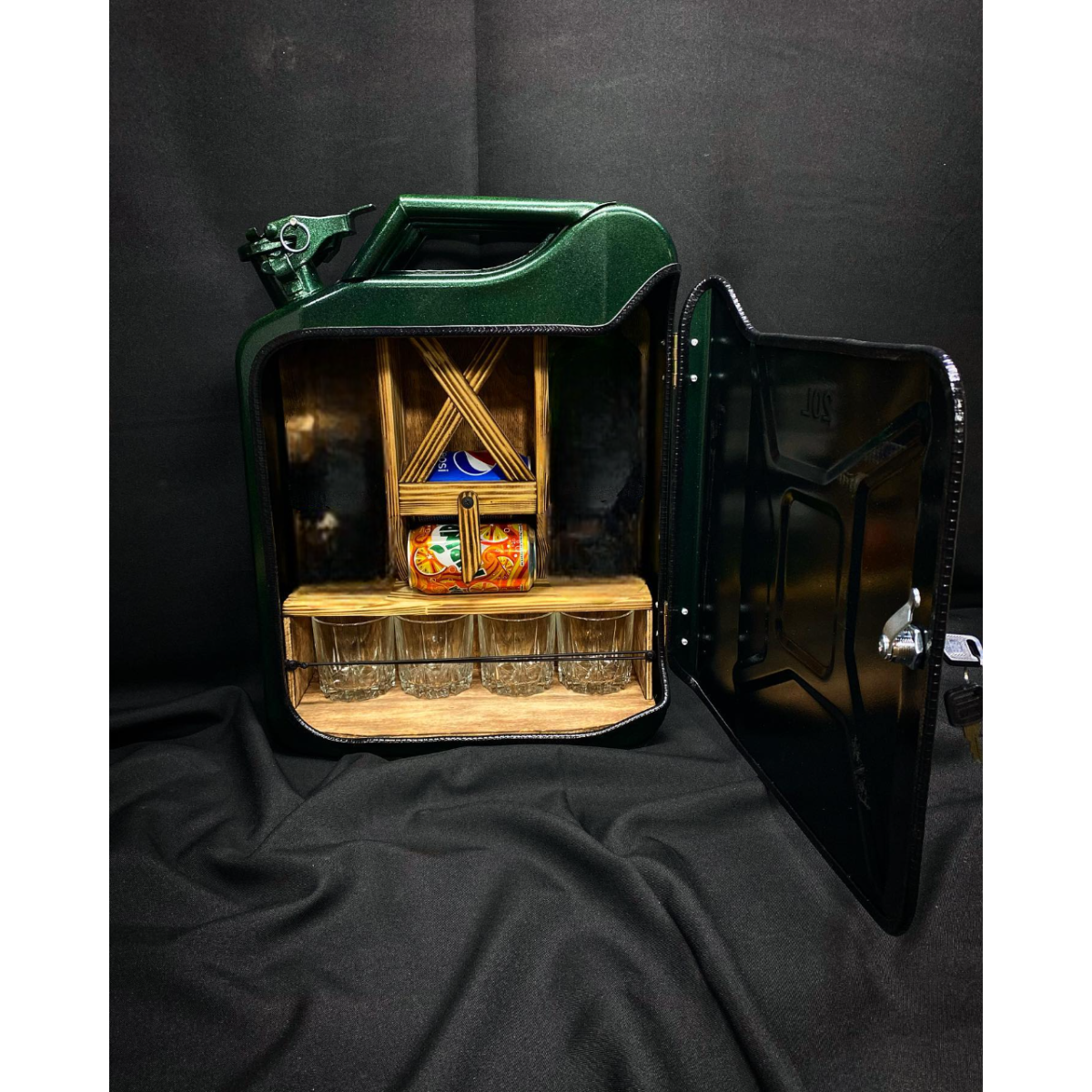 Каністра бар подарункова для алкоголю на 20 літрів з посудом «Міні бар 2» чорна в подарунок чоловікові