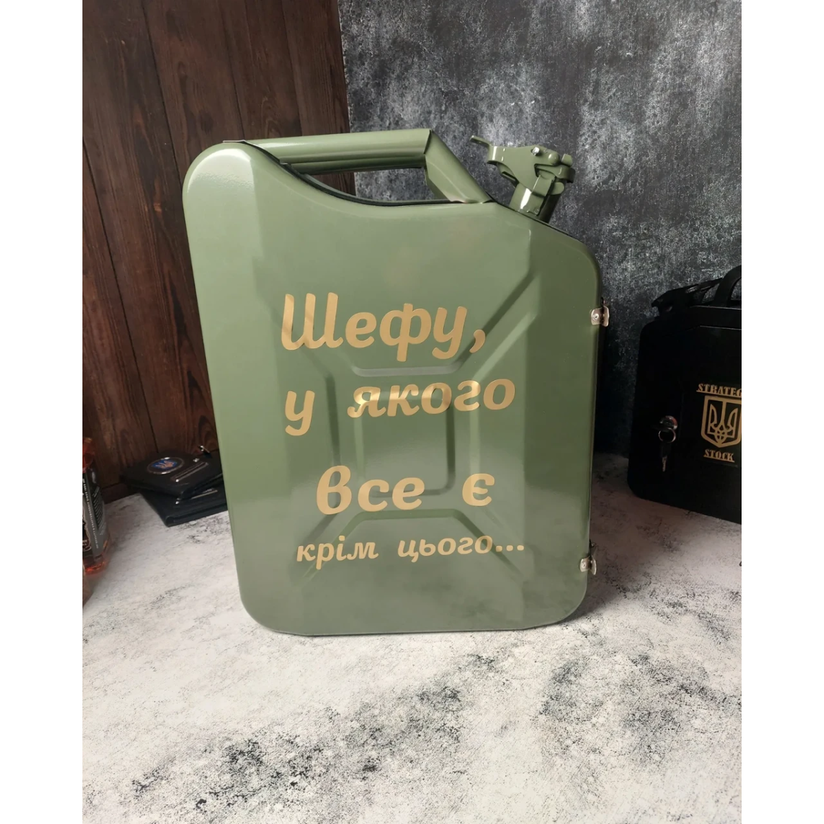 Каністра міні бар для алкоголю на 20 літрів з посудом «Міні бар 2» в подарунок хлопцю, шефу на день народження