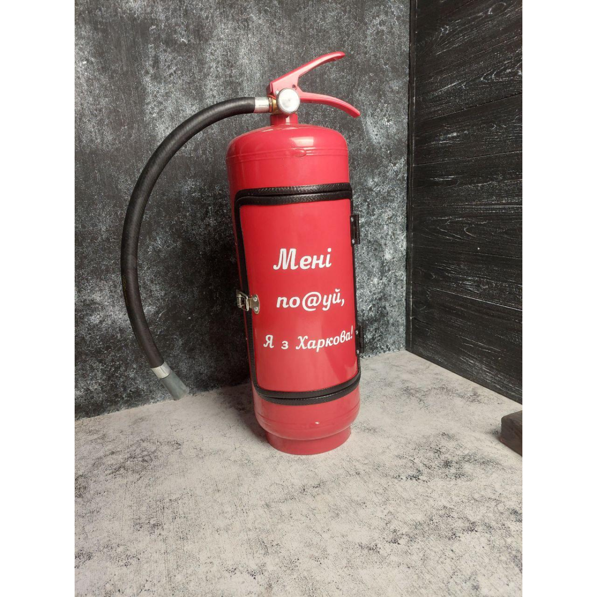 Міні бар вогнегасник червоний з посудом у подарунок чоловікові «Трійка» / Подарунковий набір хлопцю